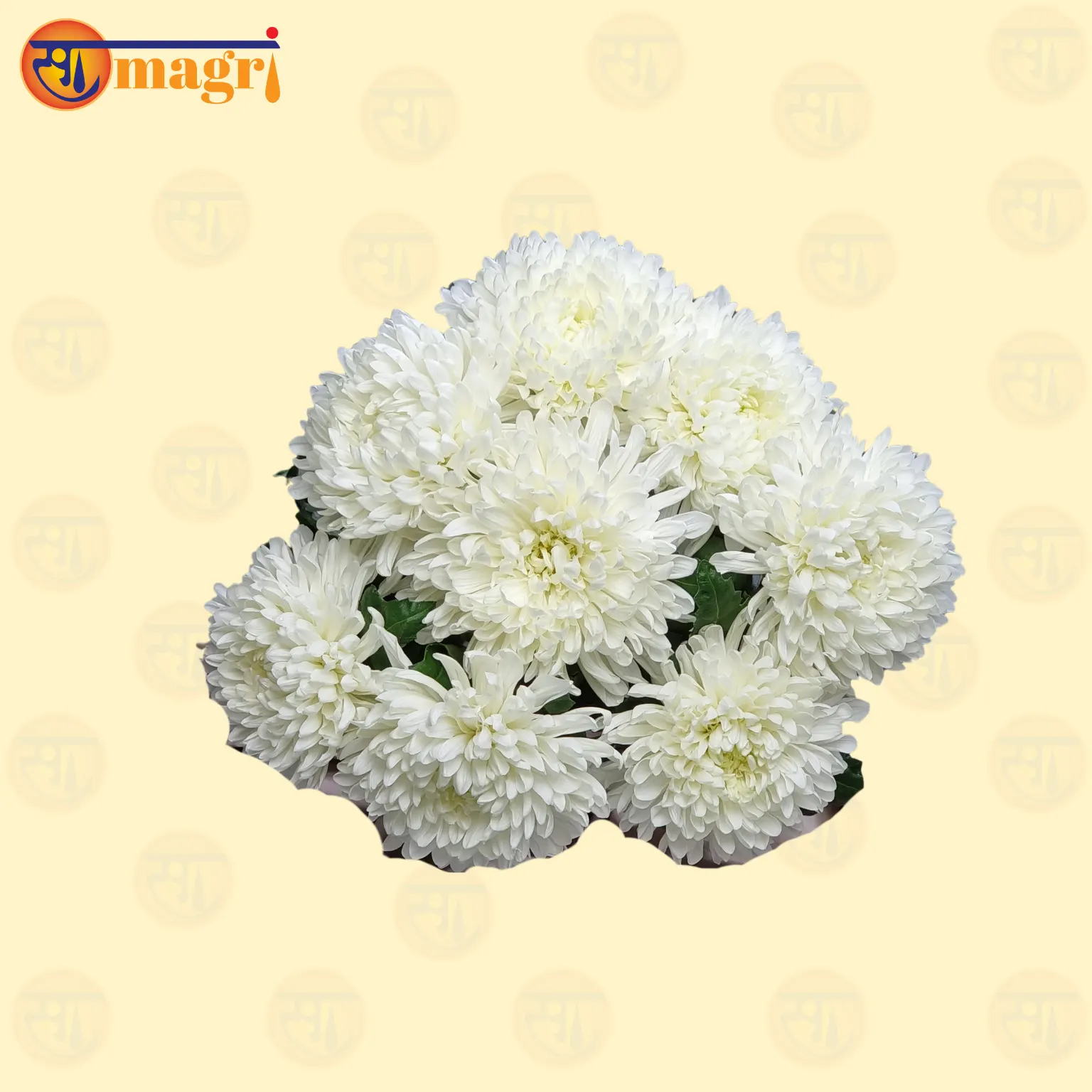 The White Chrysanthemum from Samagri symbolizes peace and purity, making it a perfect choice for Sanatan Pooja rituals and special occasions. These delicate flowers are handpicked to ensure their freshness and pristine beauty.